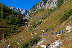 Arrivée en Italie par le col de La Seigne, nous prenons la variante par le col de Chavannes puis nous longeons la crête sous le Mont Fortin avant de redescendre en direction du refuge de Maison Vieille où nous prenons notre premier goûter…
